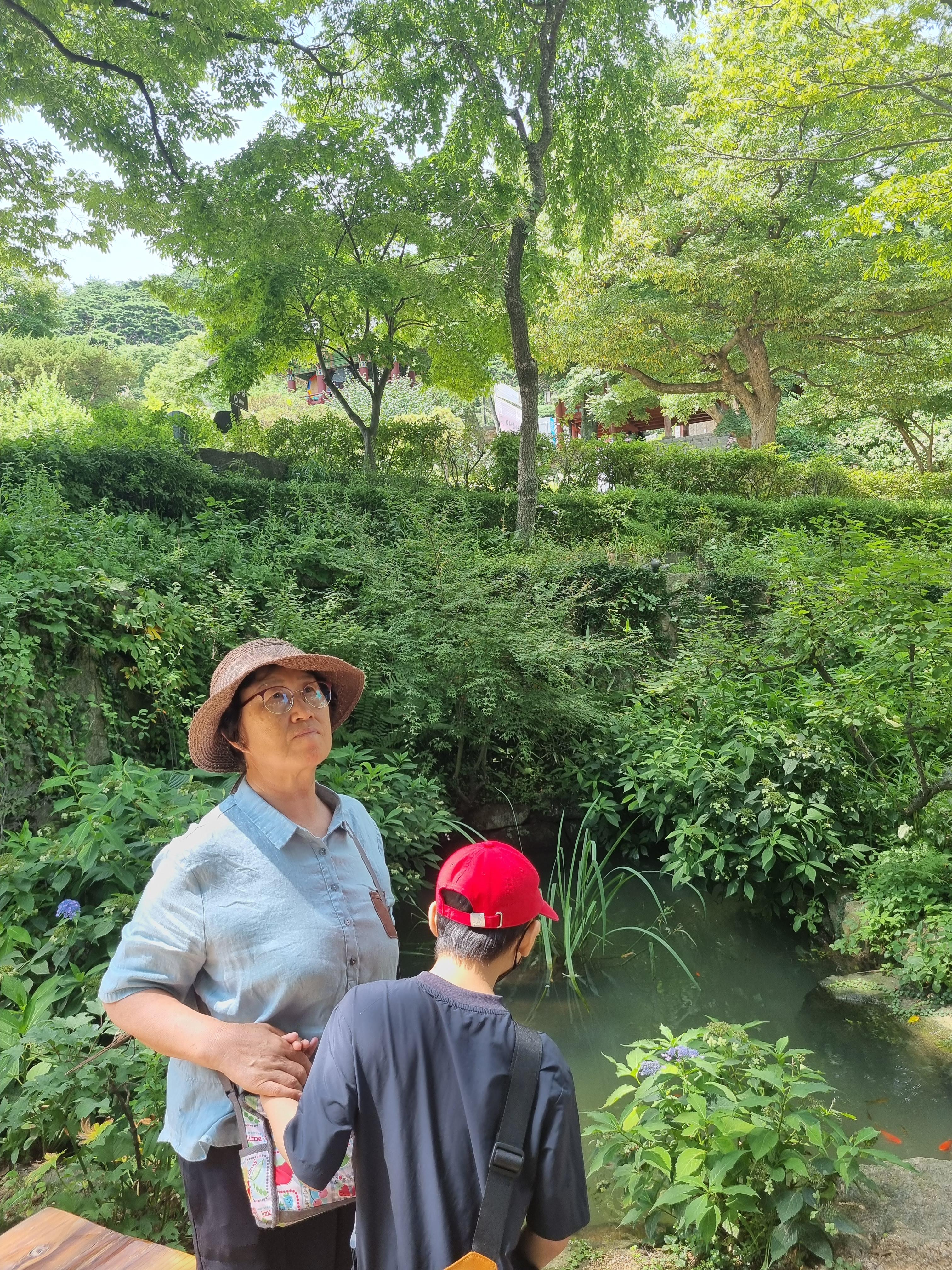 마침 수국도 피어있어 외할머니와 아들래미 사진도 남겨봅니다.